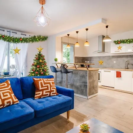 L'appartement Le Rêve Bleu - 2 chambres avec balcon&parking gratuit spacieux donne sur le jardin et comprend un balcon et un vestiaire. L'endroit comprend 2 chambres à coucher à coucher. À l'appartement, une toilette séparée sont à votre disposition pour améliorer votre confort. De plus, vous trouverez des serviettes dans la salle de bain.